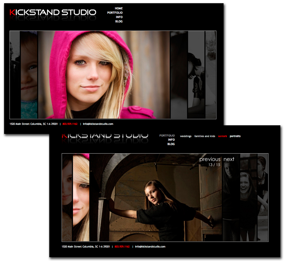 KICKSTAND STUDIO is a photography studio specializing in portrait and wedding photography. They needed a clean, modern site to showcase their images.